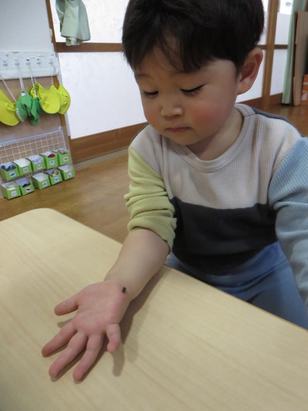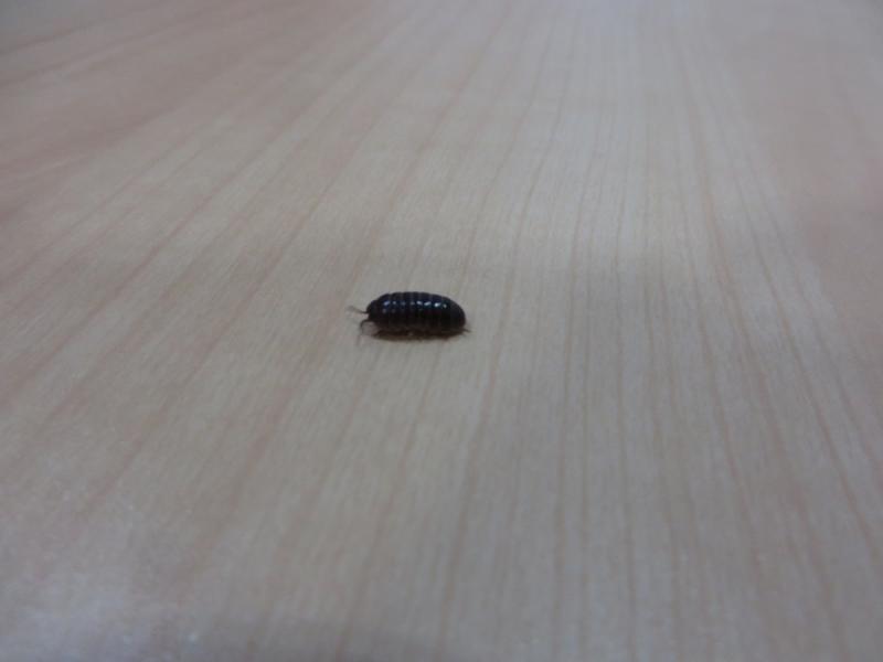 机を歩くダンゴ虫をじーーーーーと見たり、手の上を歩かせたりして