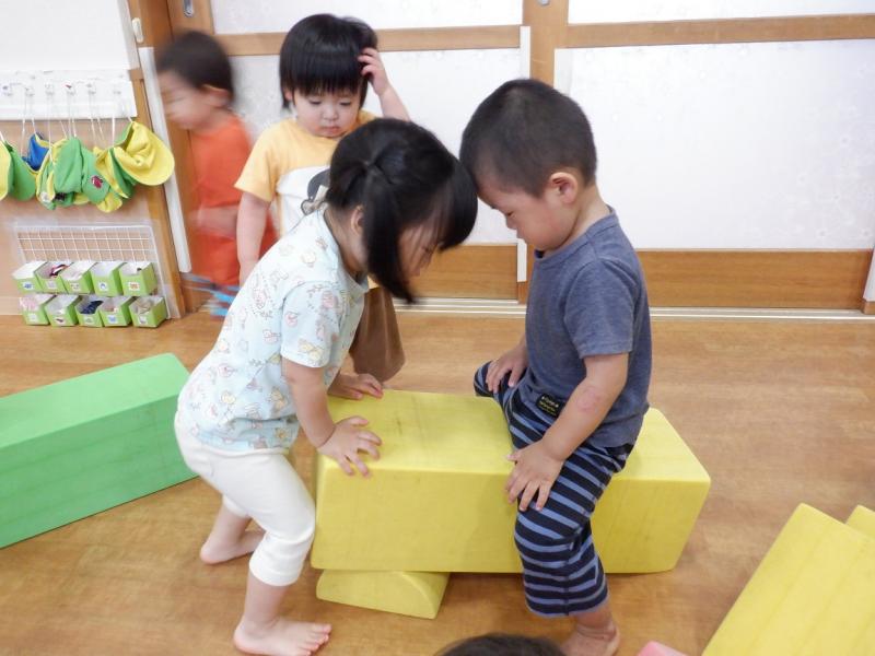 大きなソフトブロックで遊びました。