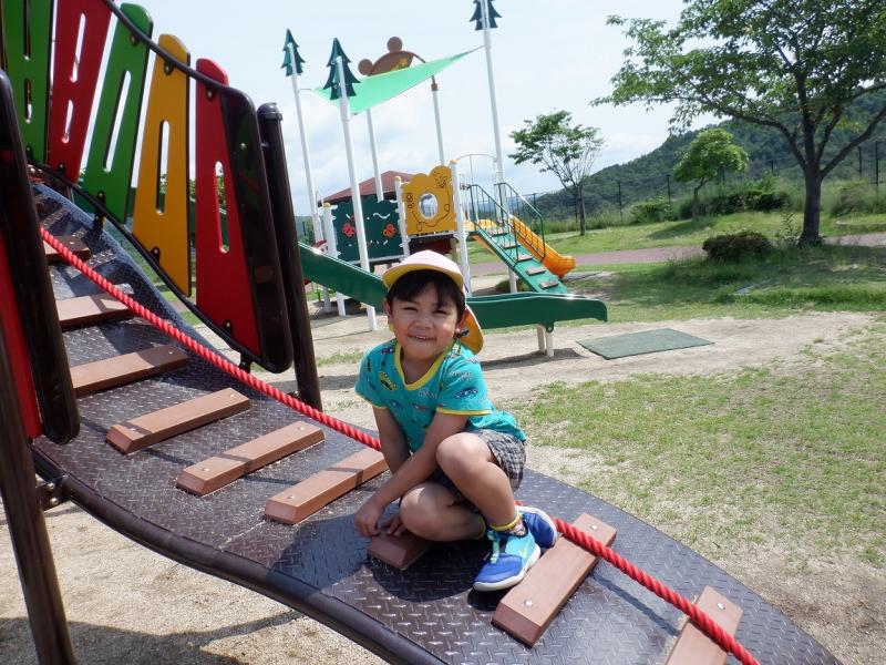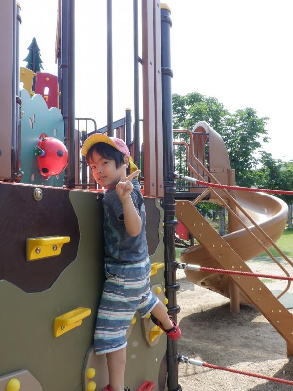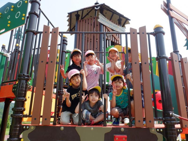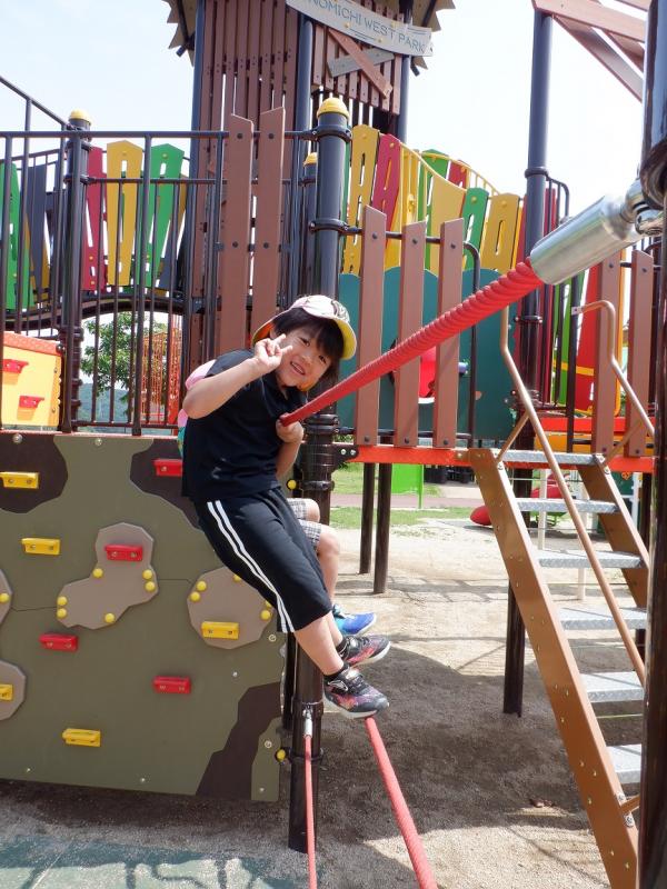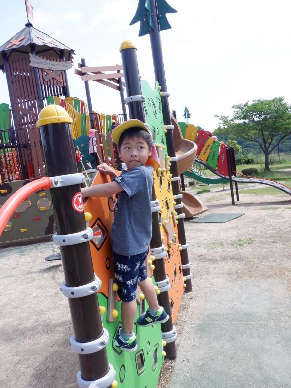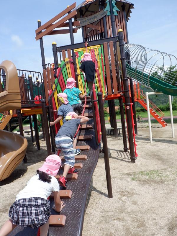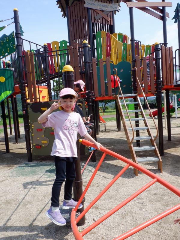 公園では、大型遊具に大興奮!クラスみんなで探偵ごっこと言いながら1列になり