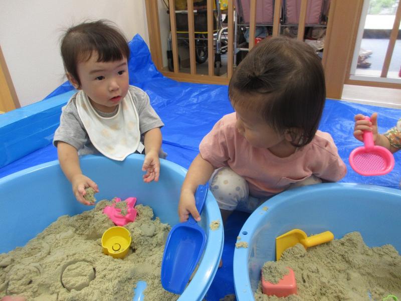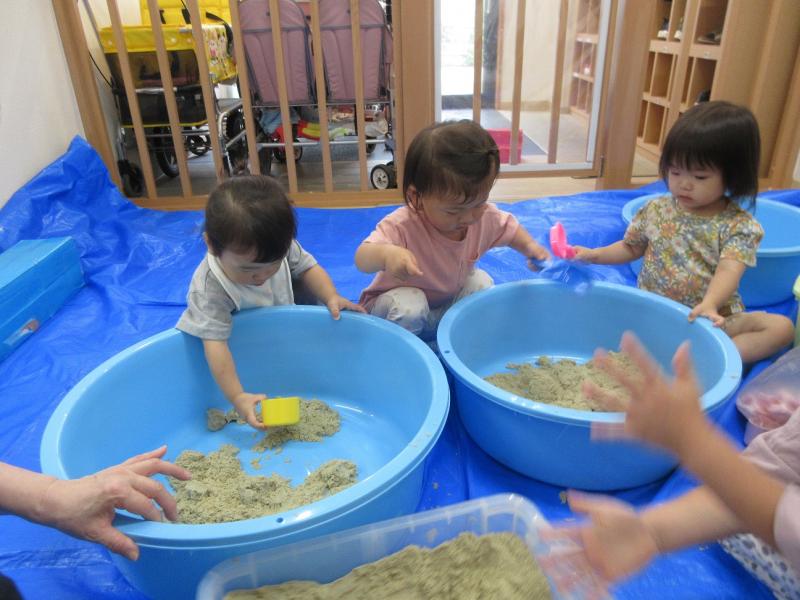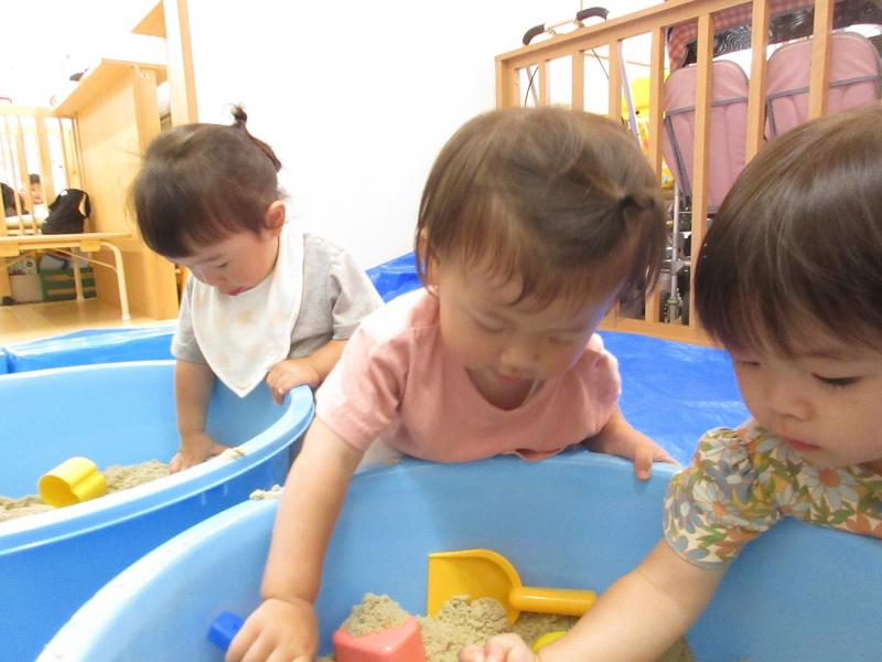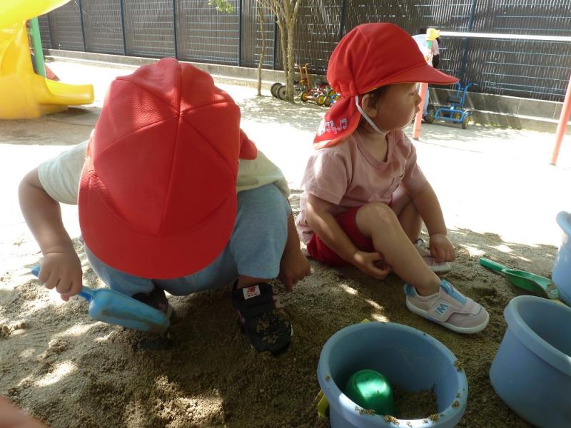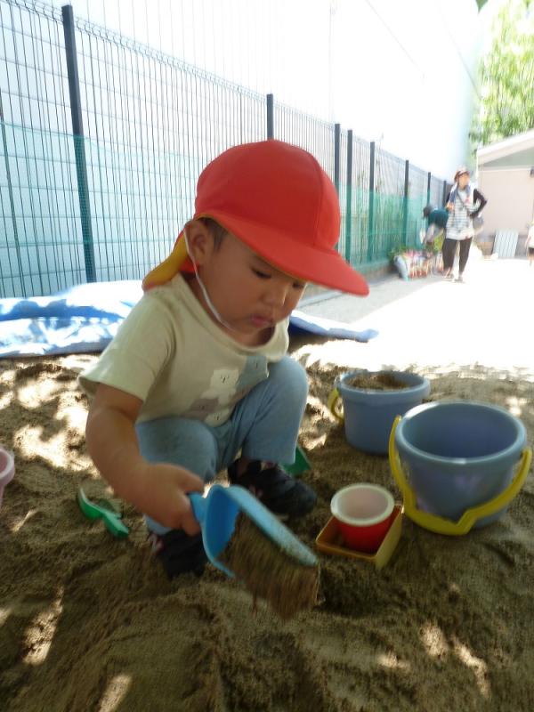 お友だちと砂まみれになったりと、あそびが変化していきます。