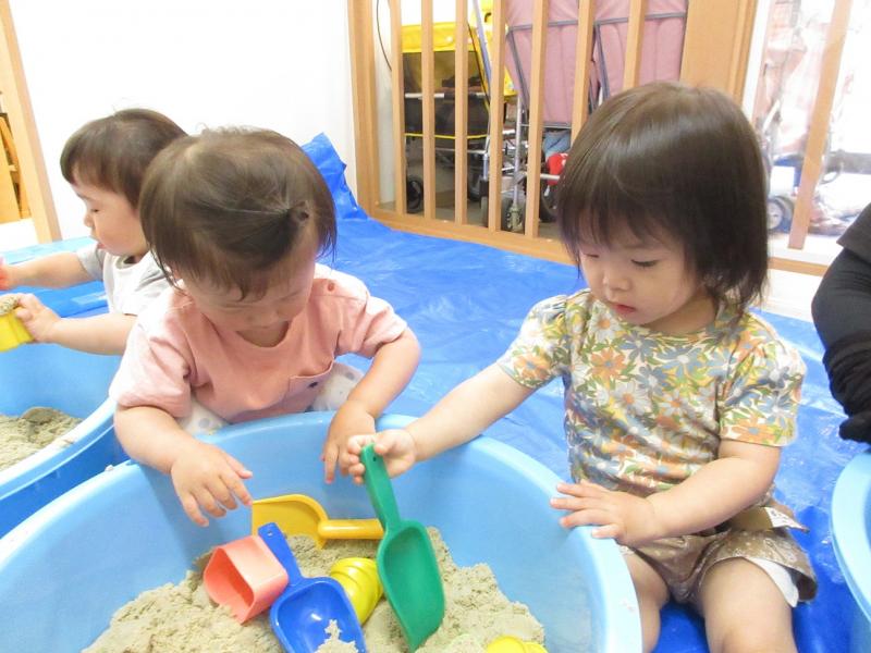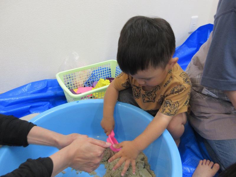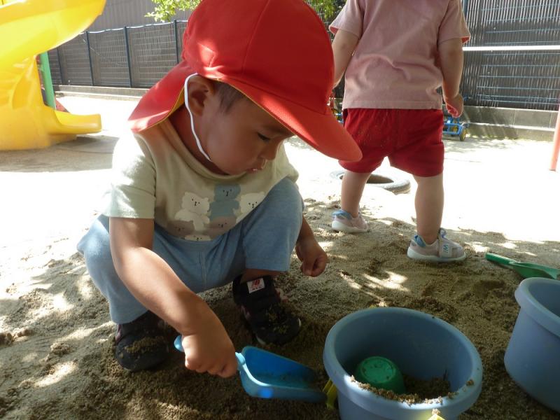 スコップで砂をすくう感触が楽しくて、どんどんすくって