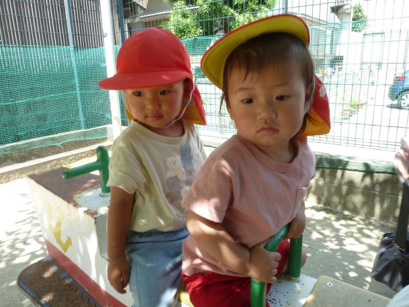 ぽーと保育園のゆき組さんと一緒に雨の日は室内で、