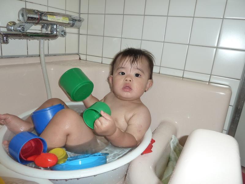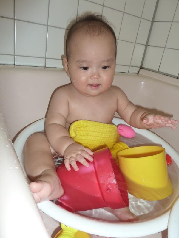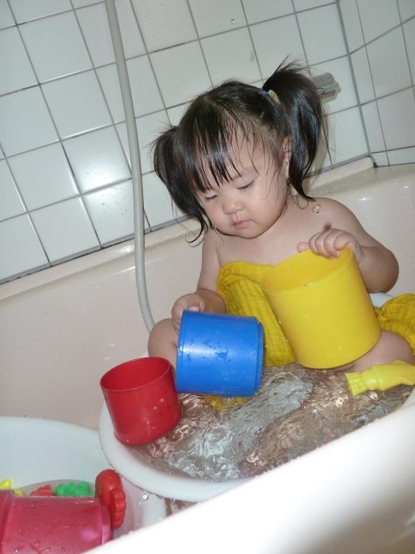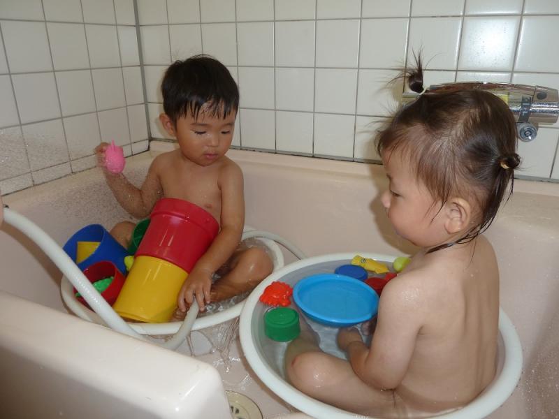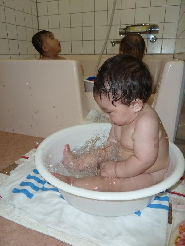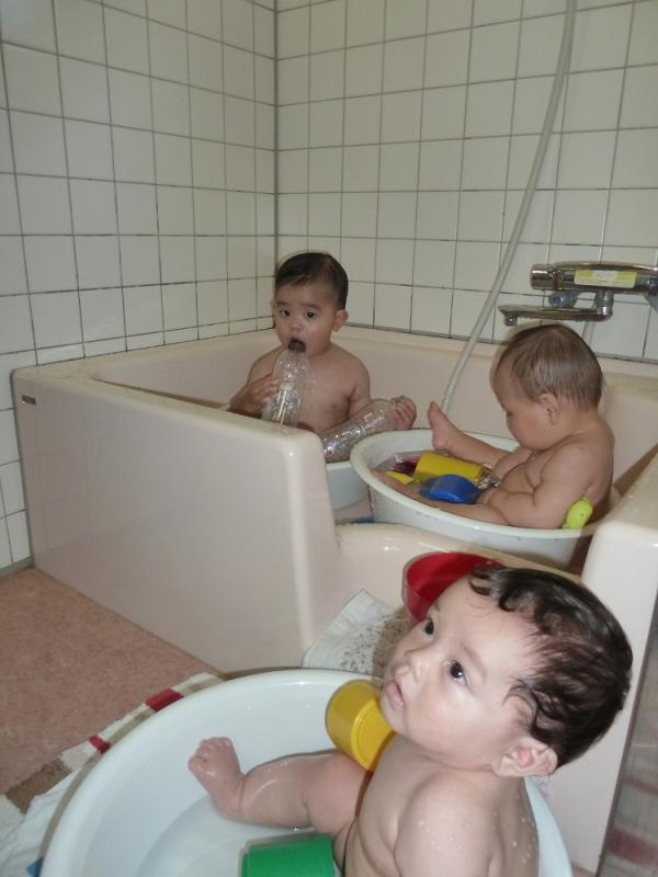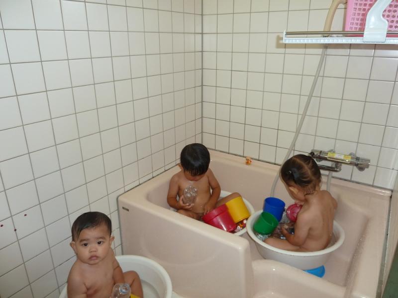 ひかり・ゆき組さんは、毎日たらいでゆったり水あそびを楽しんでいます。