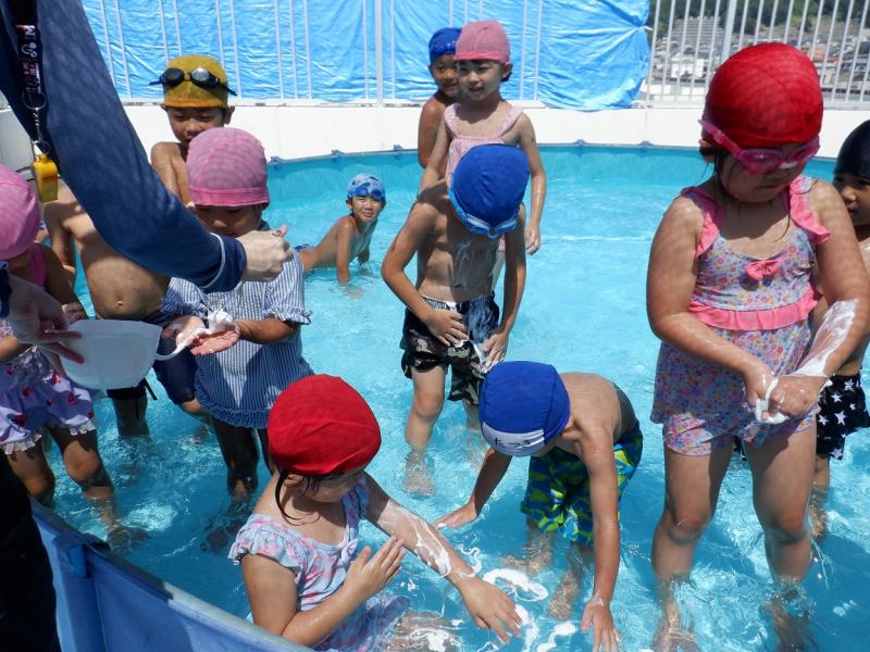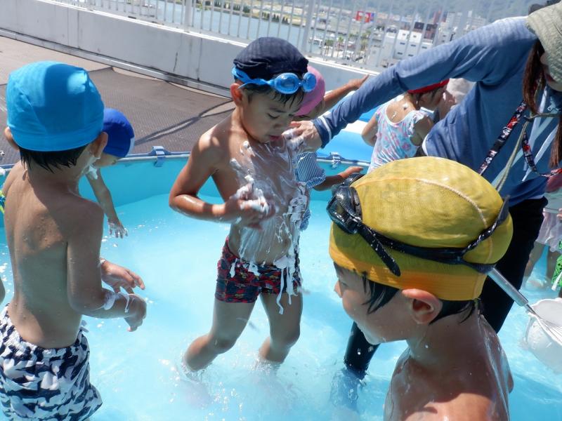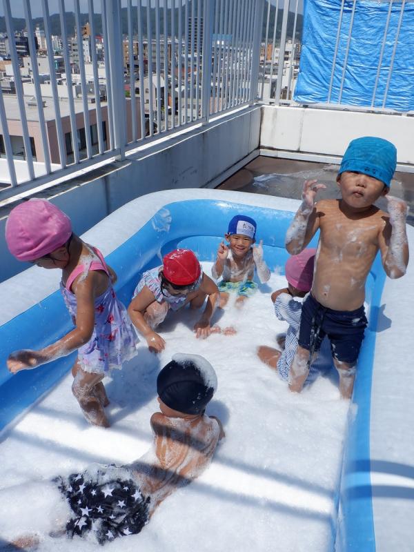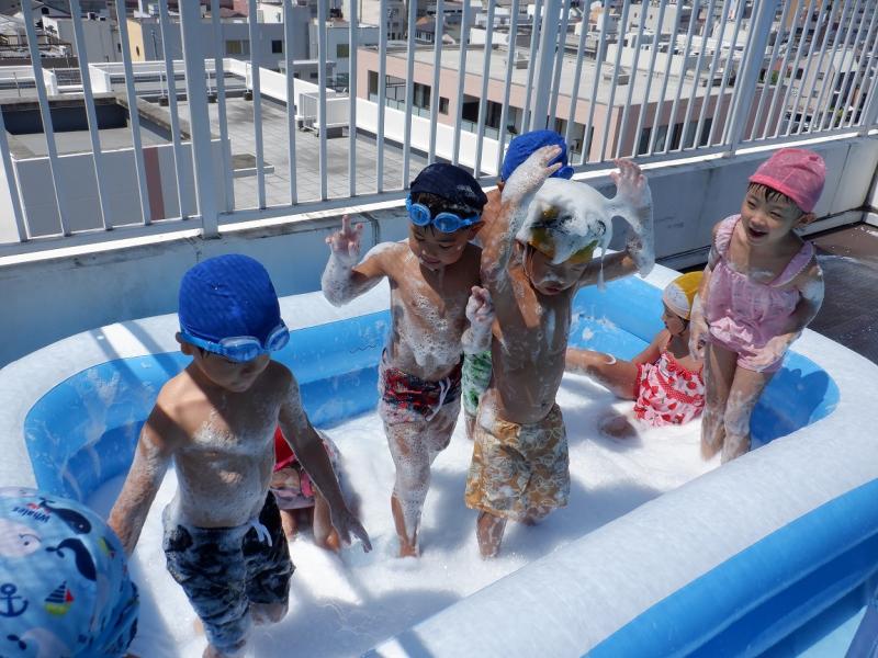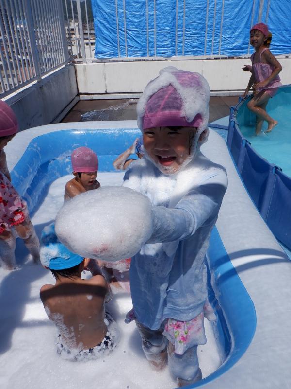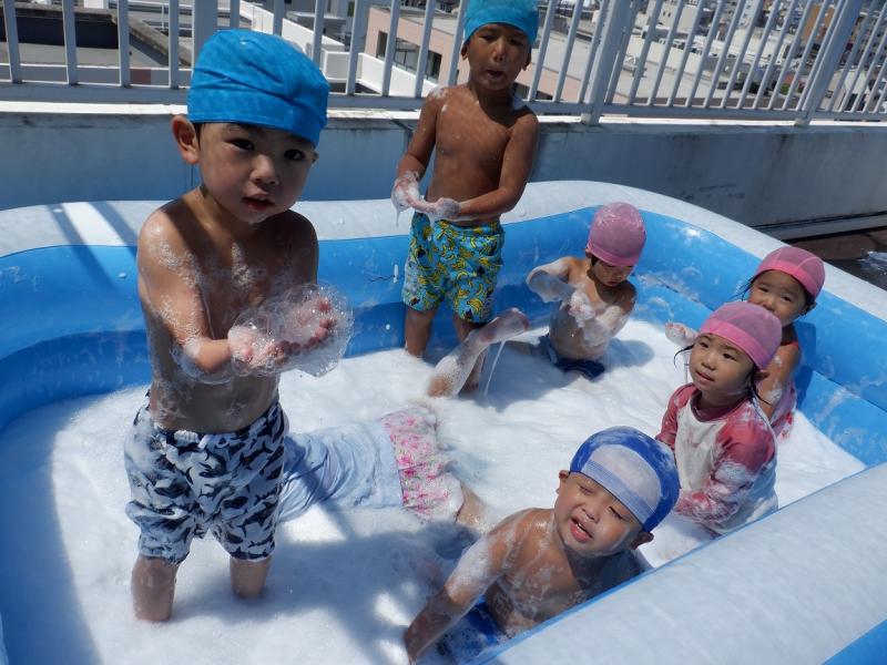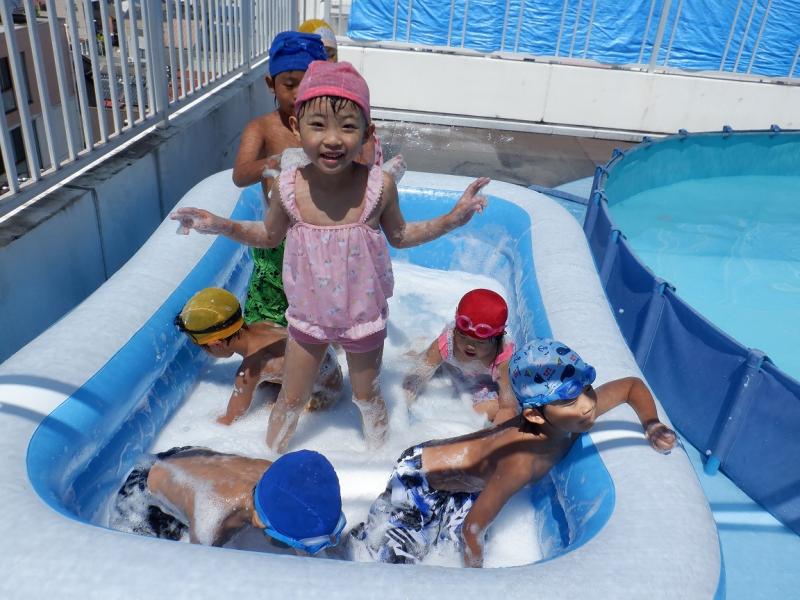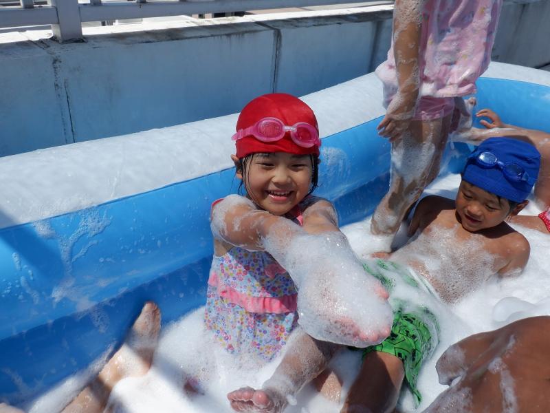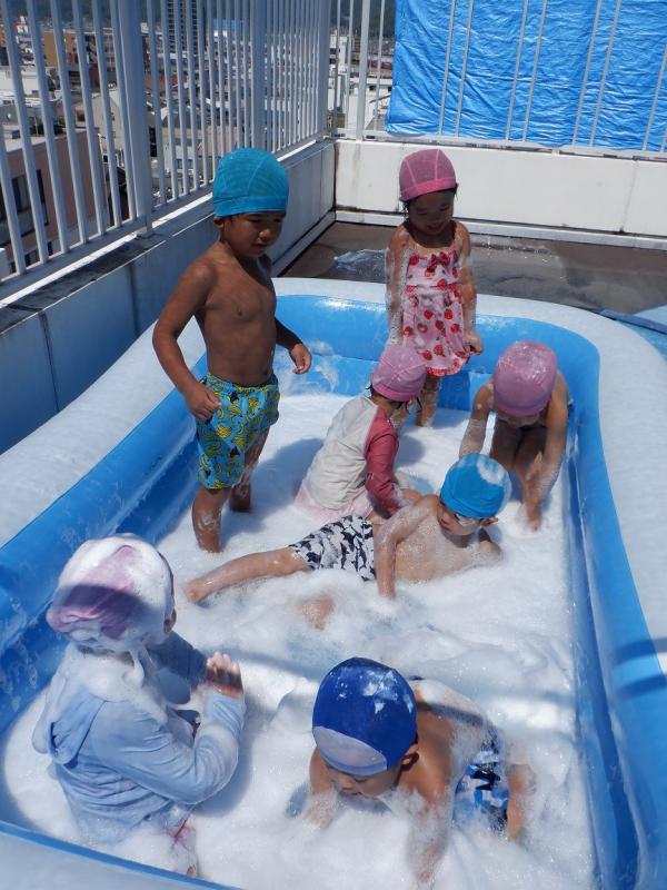 次にビニールプールを泡風呂のようにして順番に入り楽しみました。
