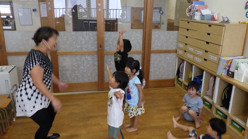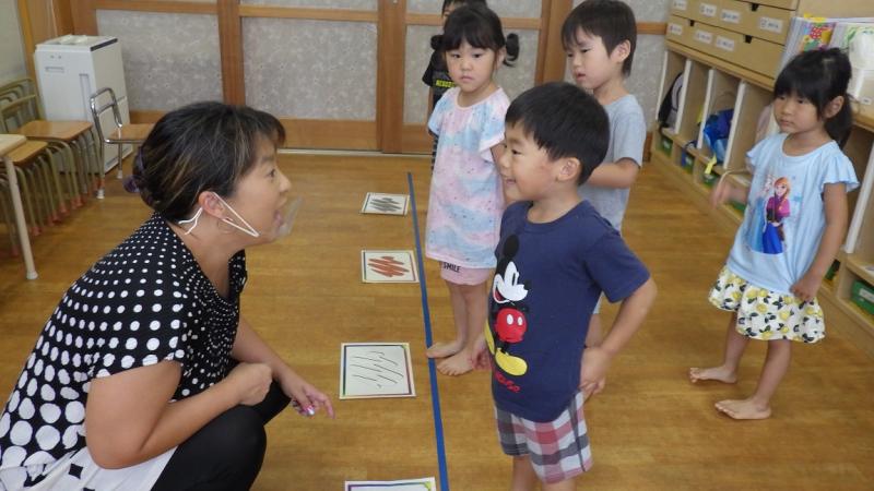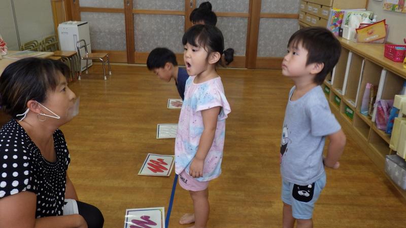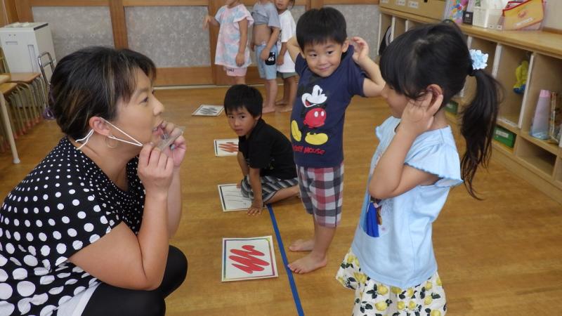 講師の先生が保育室に入ると「やった~えいごの先生だ~」と、とても嬉しそうです。
