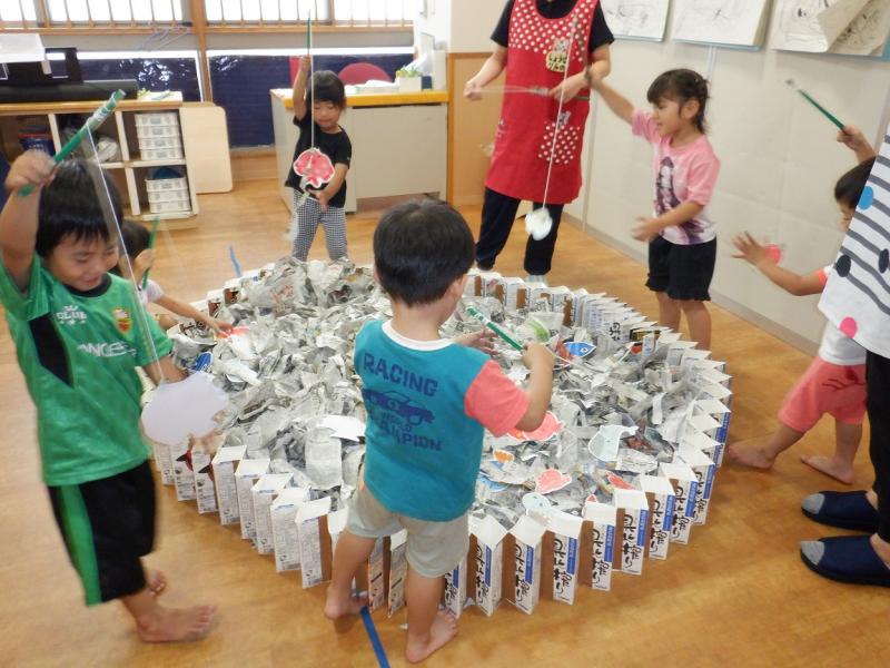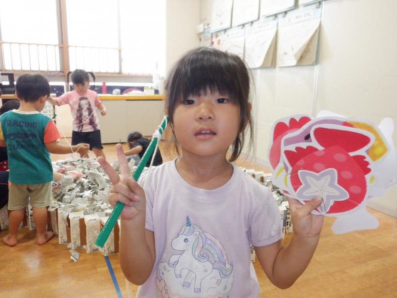 最後は、たくさんの魚を泳がせて魚釣りをしました。