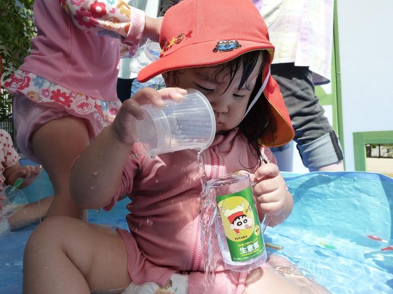 ゆき組(1歳児)ぽーとプールで水あそび!