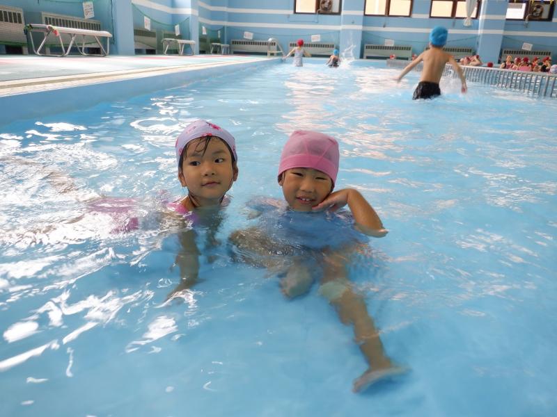ドキドキしている様子でしたが、プールの中にいざ入ると夏のプールあそびの経験もあって
