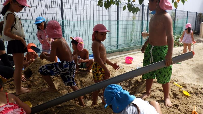 そら組さんが「トンネル掘ろう!」「大きい穴を掘る!」と、色々リードしてくれて