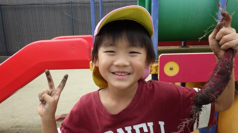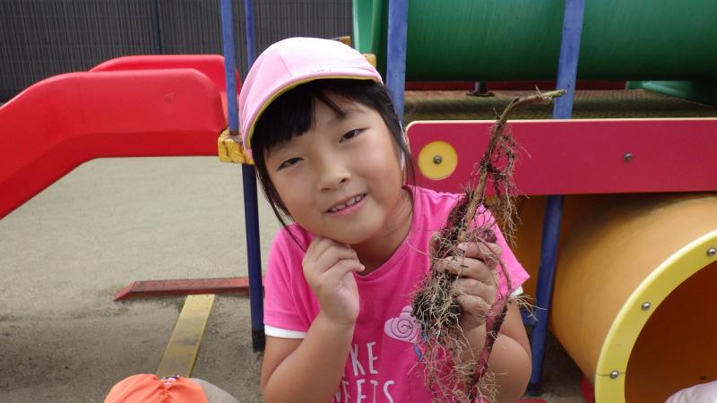 春に植えた苗から何が出てくるかと楽しみにしながら土を掘りました。