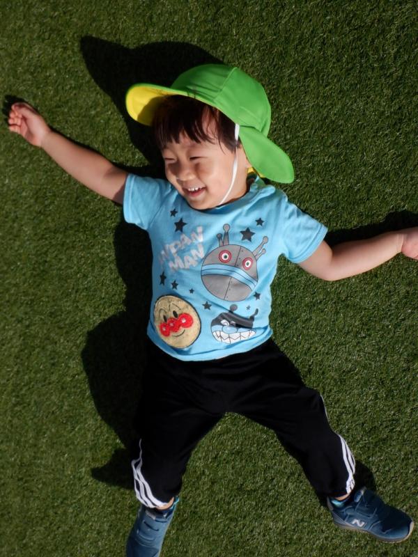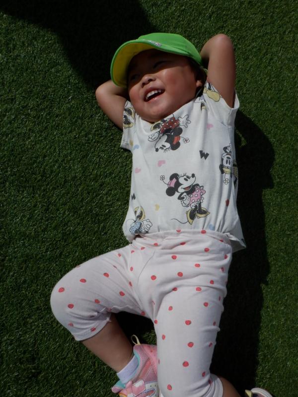 屋上の芝を見て「わ~!!ふわふわ気持ちいい~」と、寝転がる子や