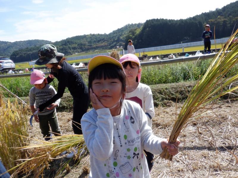 びっくりしていました。それから保育者と一緒にカマを持ち「ゴリゴリー」と、言いながら