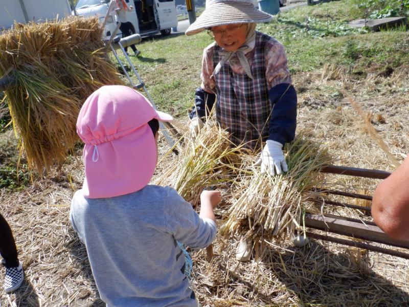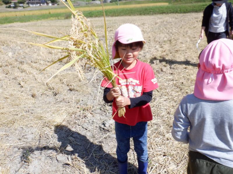 保育者が「こんなに、お米の赤ちゃんが大きくなったよー」と、伝えると「えーこれなん」と、