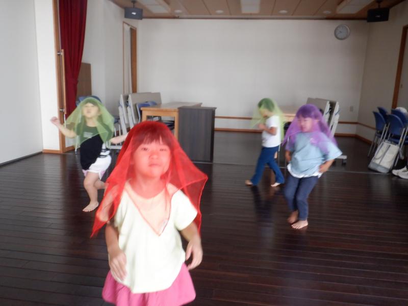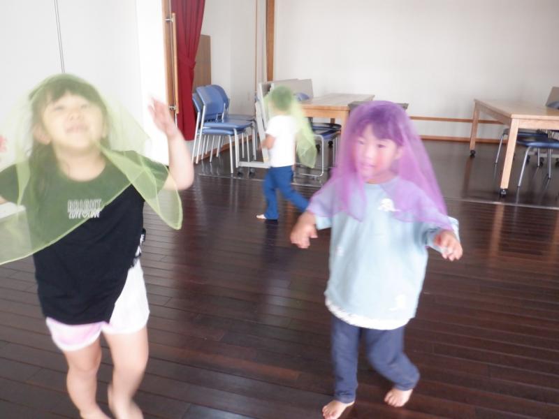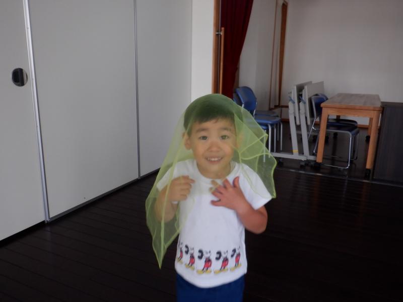 レースのハンカチを使って、お化けになりきって遊びました。