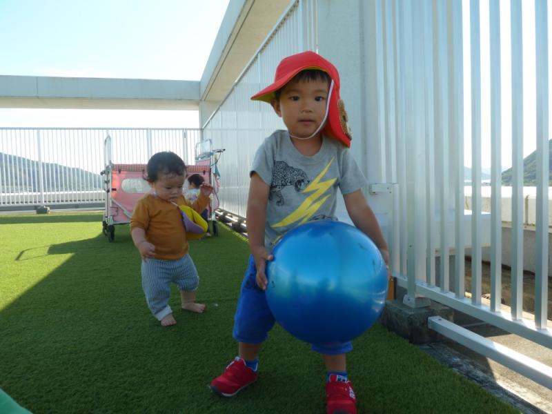 ぽーと保育園のお友だちと少し水分補給をした後、ボール遊びや追いかけっこ、