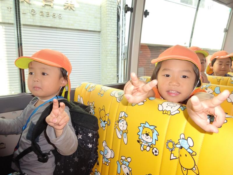 久しぶりのバス活動に子どもたちは大喜びで、バスの中では柿を見つけるなど