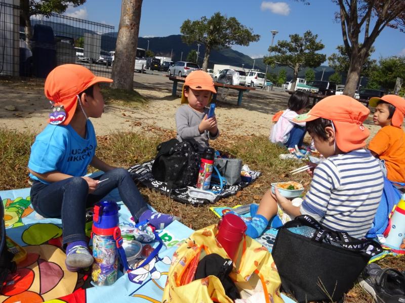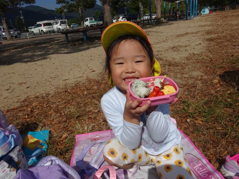 しっかり体を動かして遊び楽しんだ後は、子どもたちが待ちに待った手作り弁当を