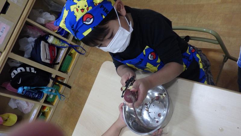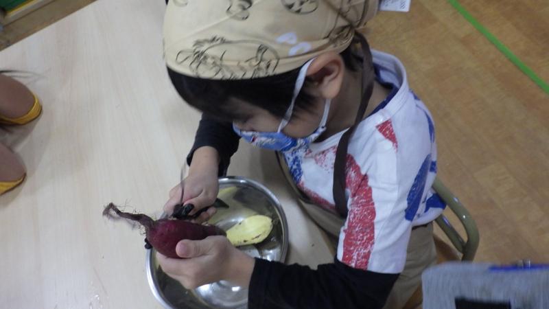 ピュラーは、芋の皮がしわしわだったので少々皮をむくのが難しくみんな苦戦していました。