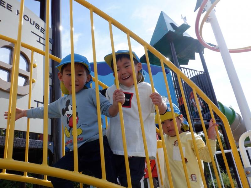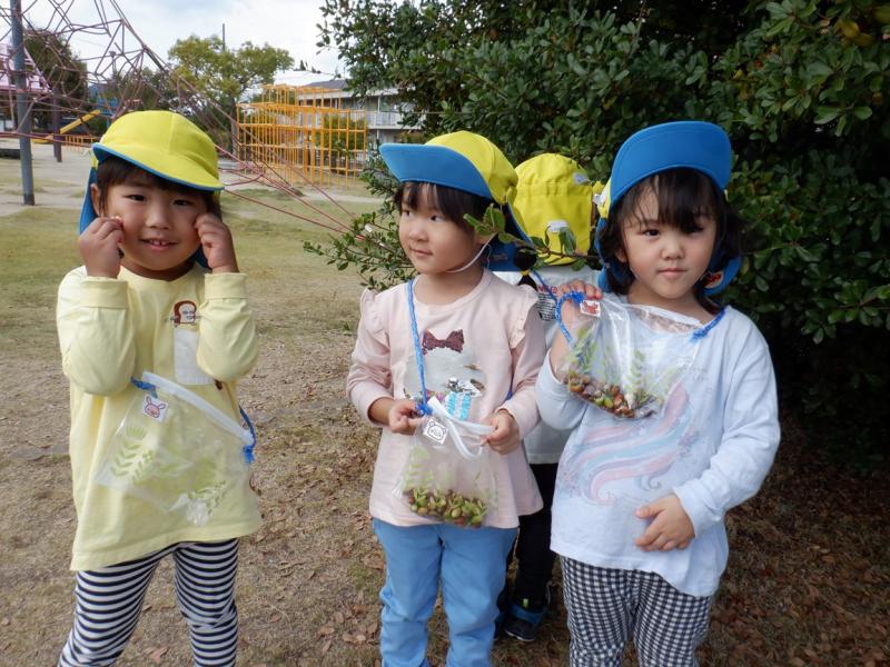 大型遊具で遊んだり、どんぐりを拾ったりして園外で開放的な気分を味わうことが出来ました。