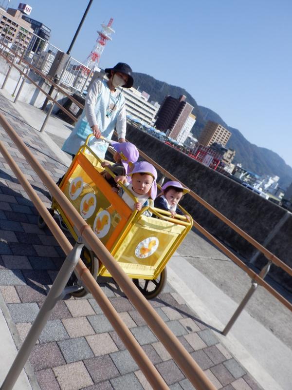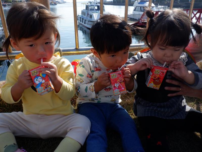 秋晴れの空の下、ぽーと保育園のひかり・ゆき組さんと一緒に港町公園へピクニックに行きました。
