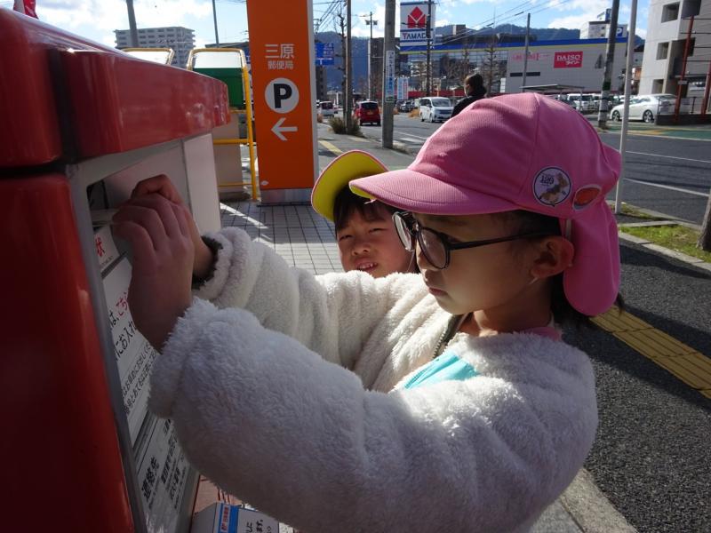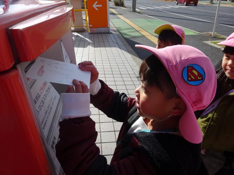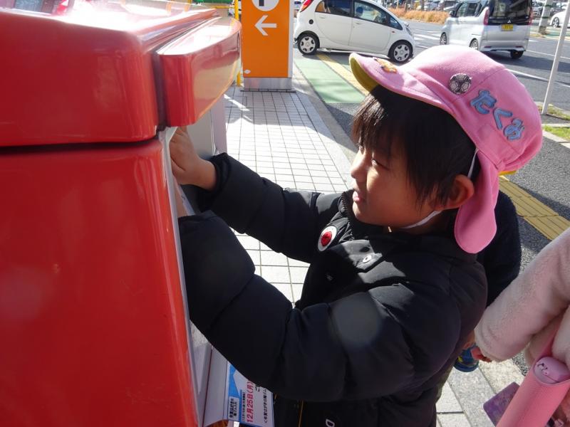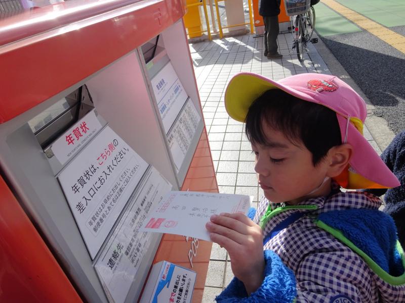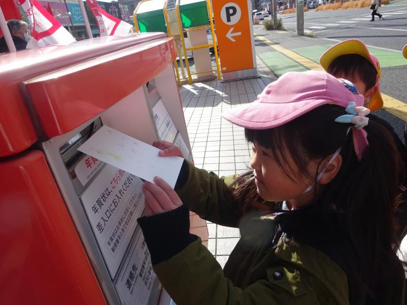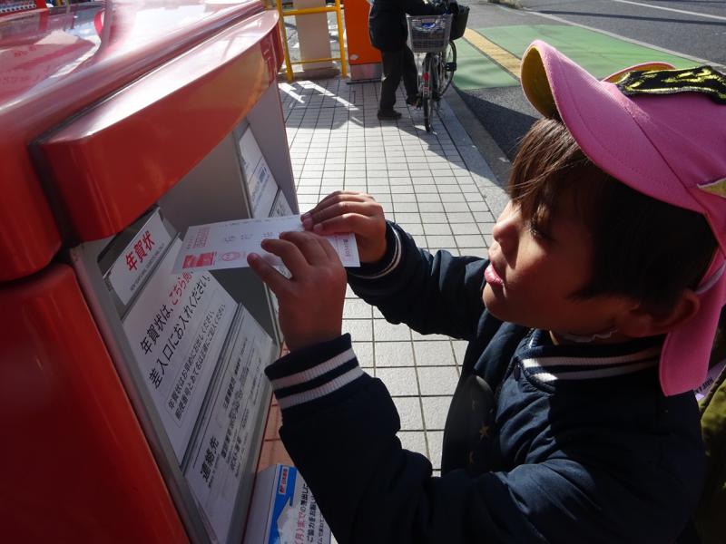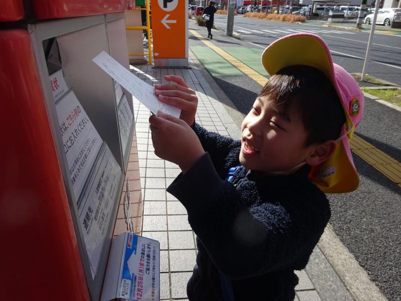 今回、1人1枚年賀状をお家の人に書きポストに投函してきました。