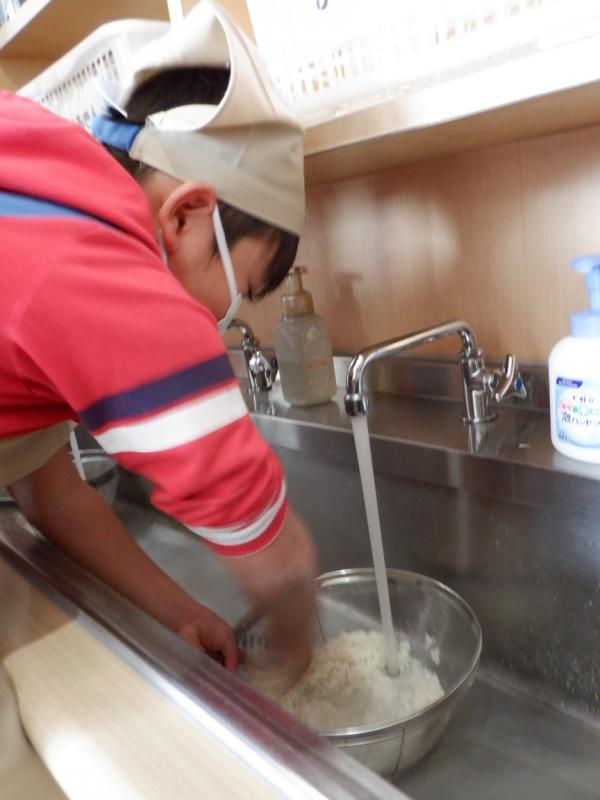 とぎ終えて給食先生のところへ。