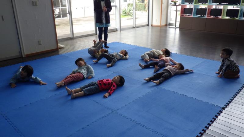 体幹教室での約束事を1つ1つ確認した後は、『立つ・座る・寝る』の3つの動作をしっかり