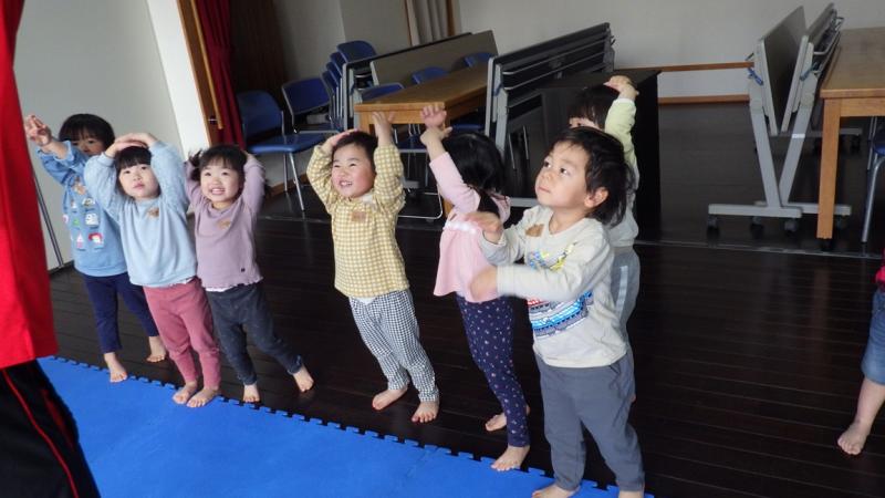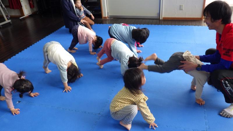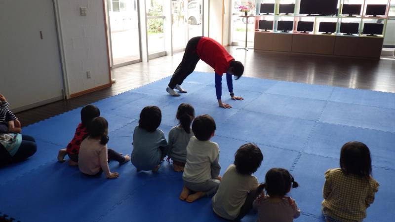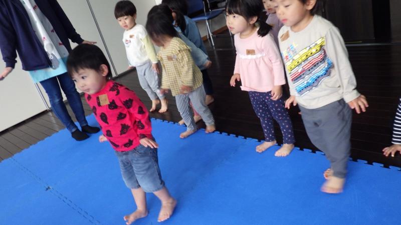聞き分けながら動いたり、マットの上でいろいろな動物に変身してマット運動を楽しみました。