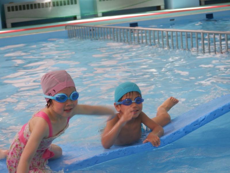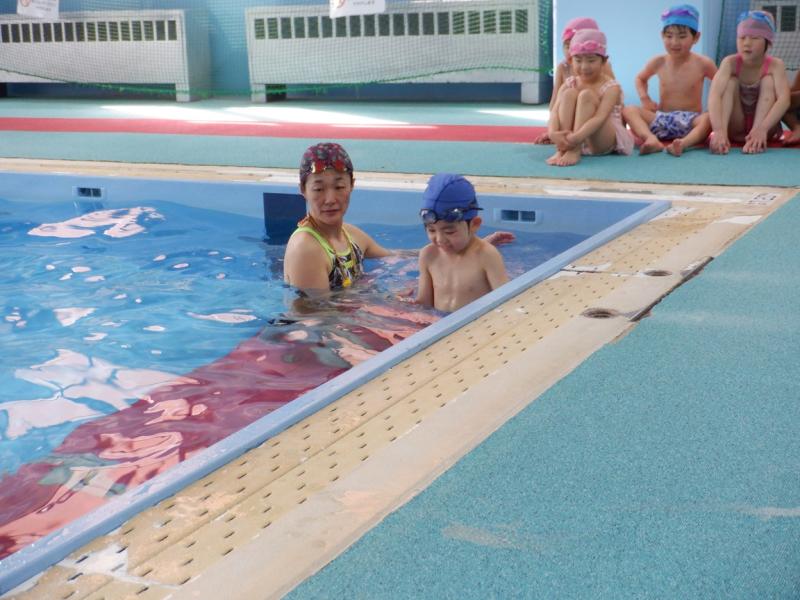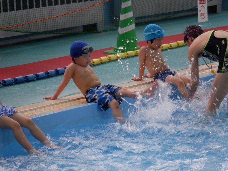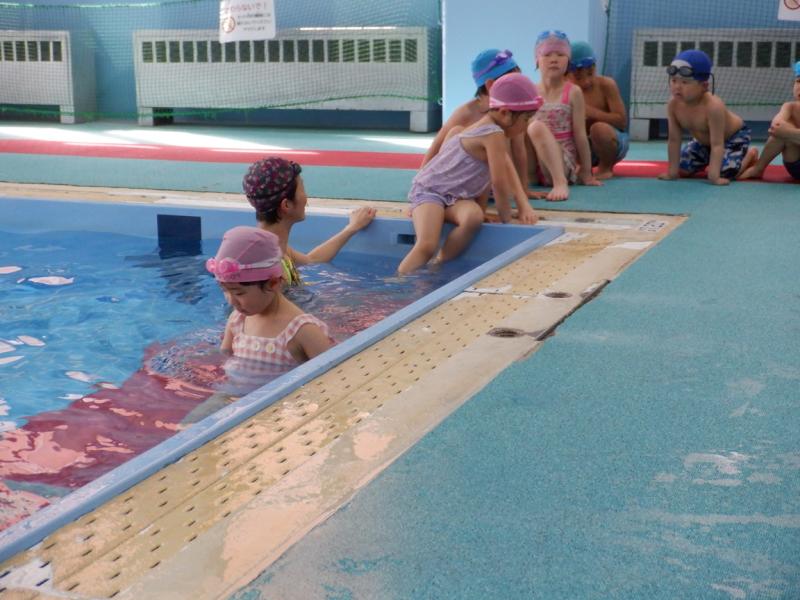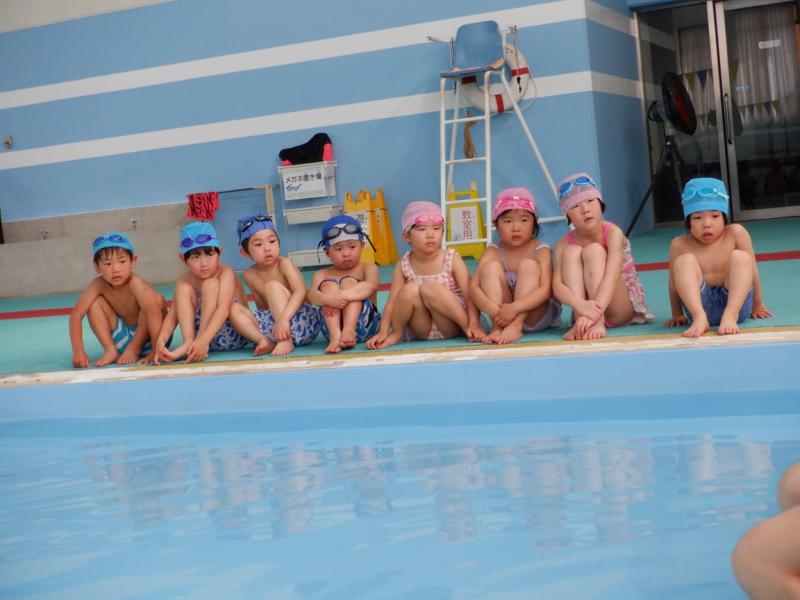 プールでは、講師の方の話をしっかり聞いて水の中での息の仕方など楽しみながら