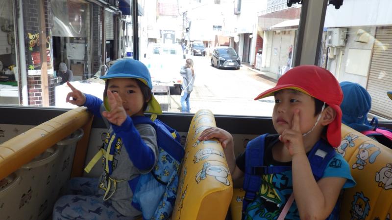前日の帰り会でバスに乗ることを伝えると、大喜びの子どもたちでした。