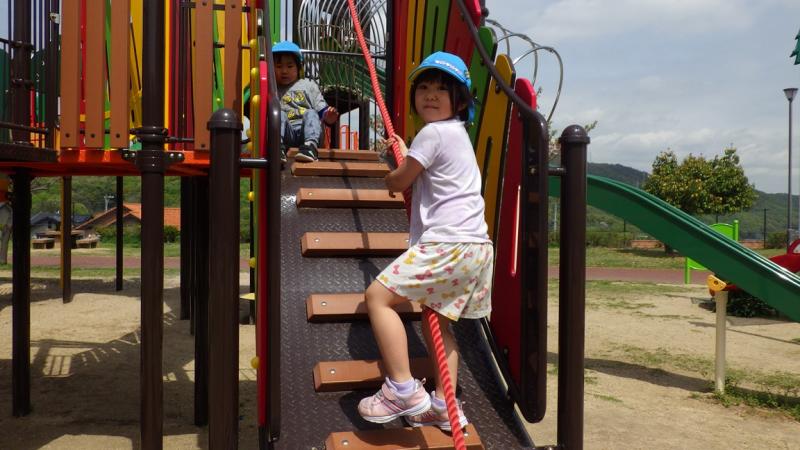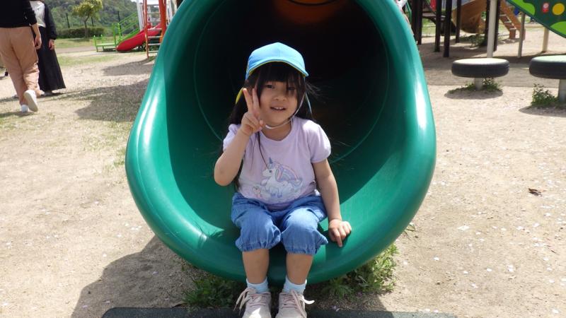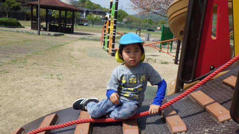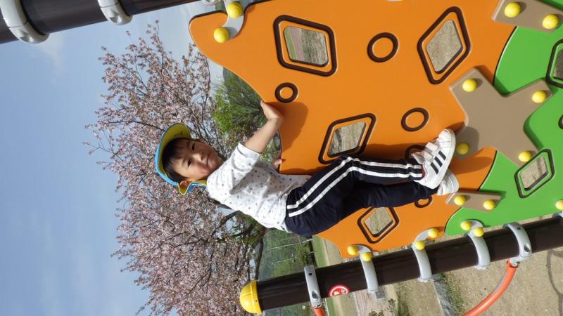 公園では、桜がチラチラ散る中、日頃遊べない大型遊具でしっかり遊び楽しみました。