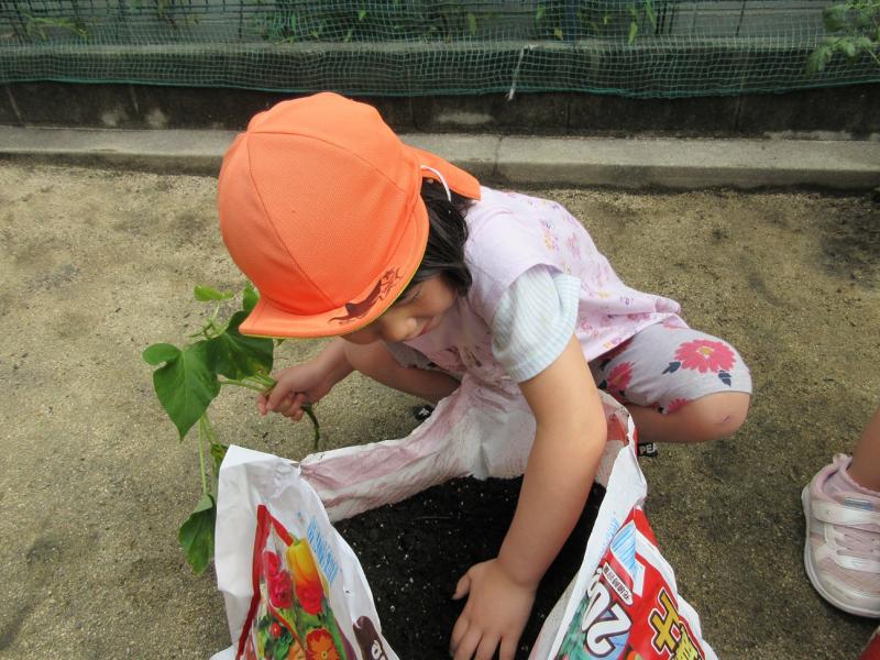 「さつま芋の苗を植えに行こう。」と声をかけると「やった~!」と大喜び。