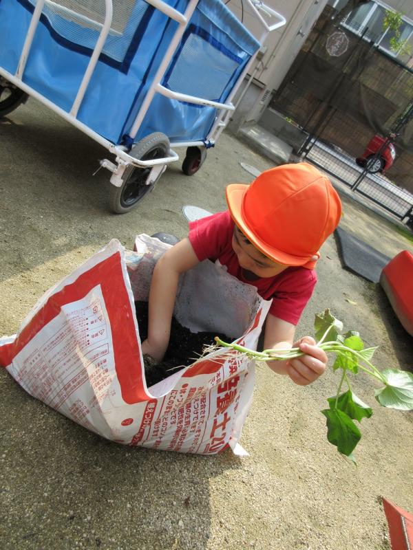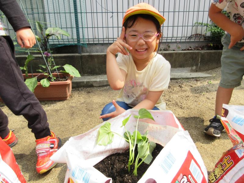 苗を見せると「さつま芋ってこんなんなんじゃ。」と言っていた子どもたちでした。