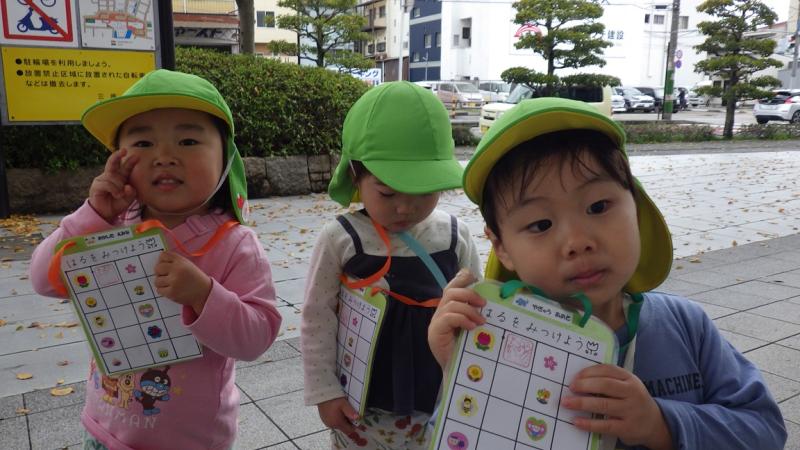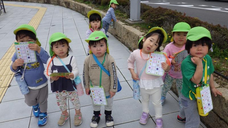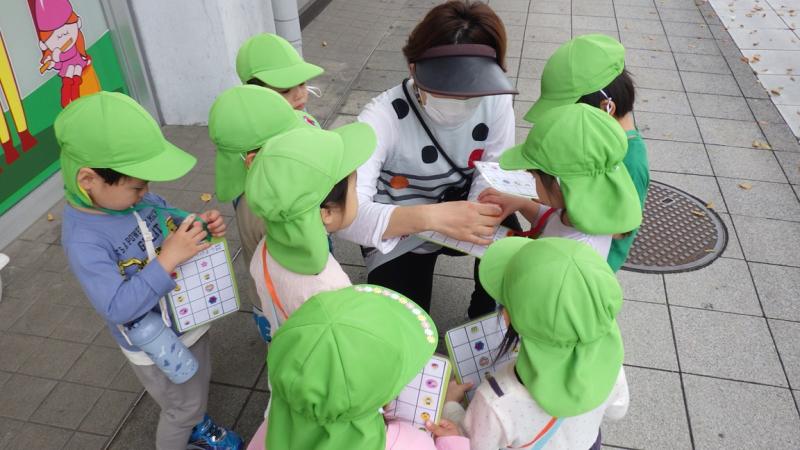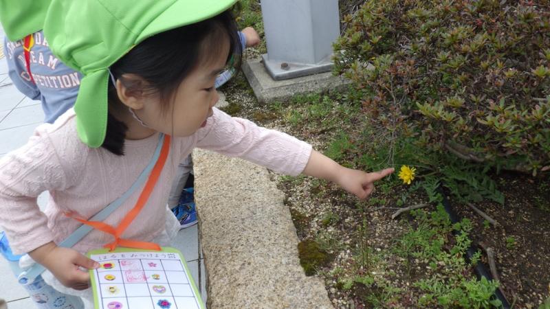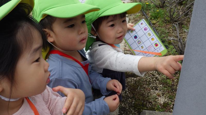 カードを見ながら知っているものを発見すると、「たんぽぽあったよ~」「アリさんおったよ~」と