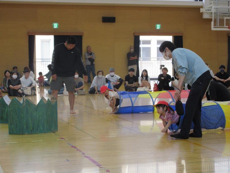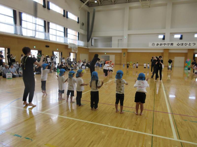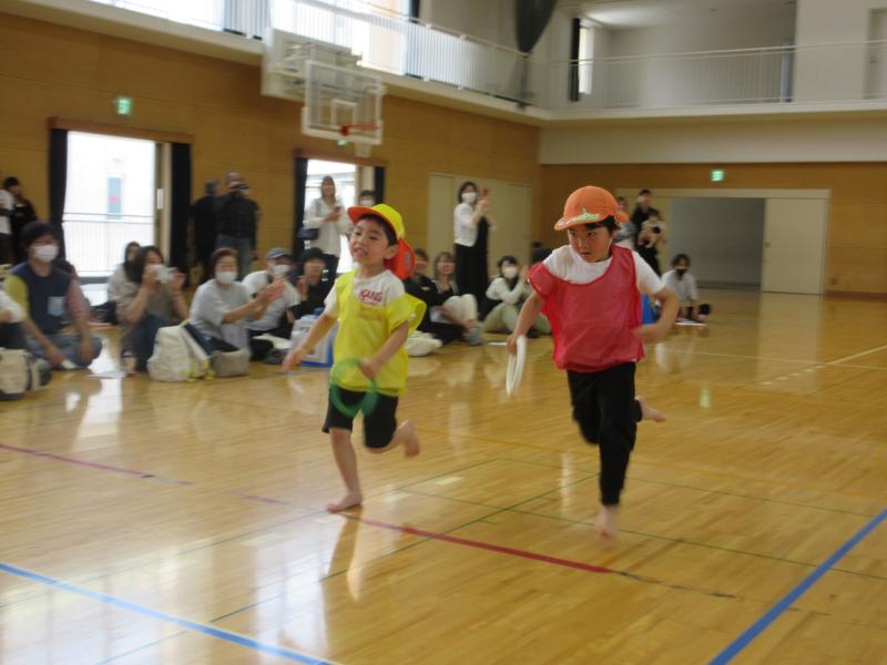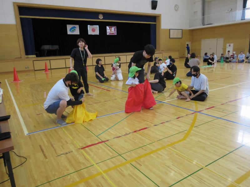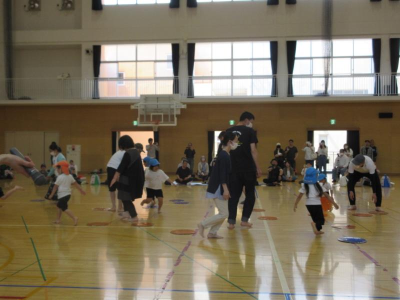 音楽に合わせて踊ったり、お家の方と一緒に競技をしたり楽しい時間を過ごしました。