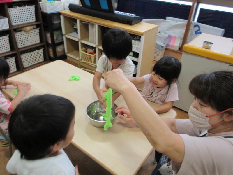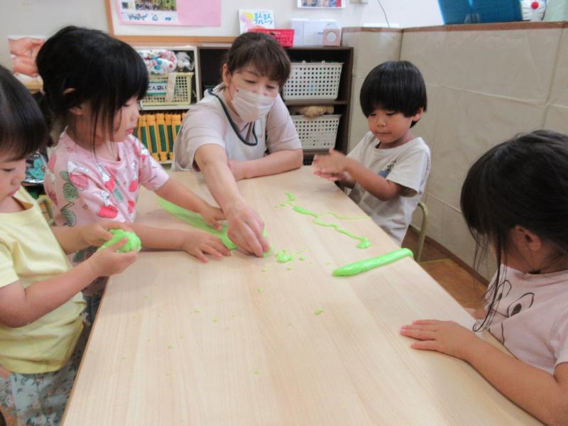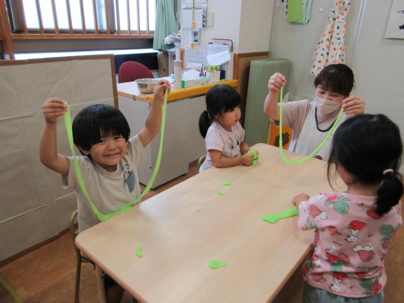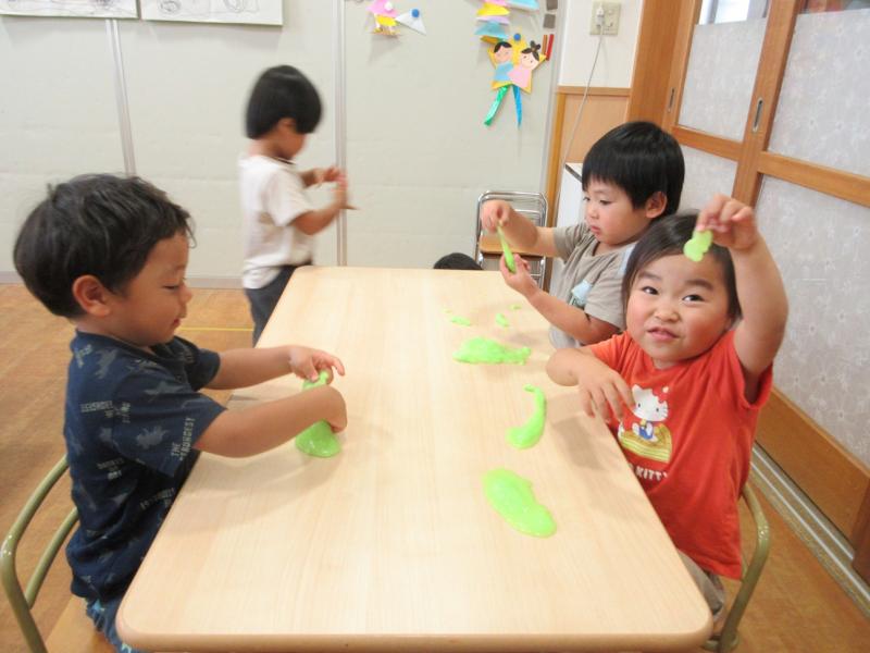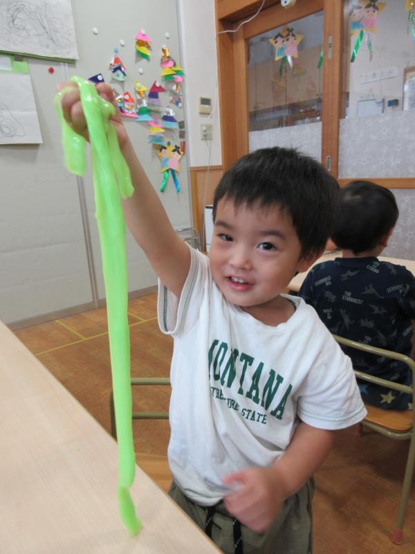 ビロ~ンと伸ばしたり、見立てたりして楽しくあそびました。