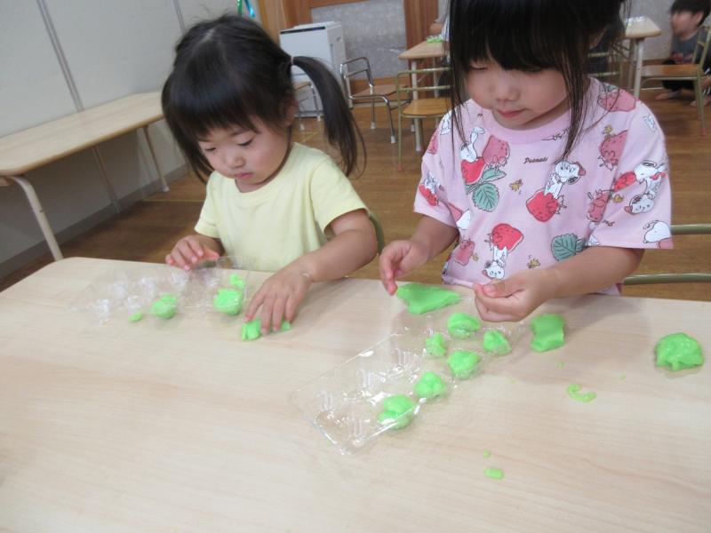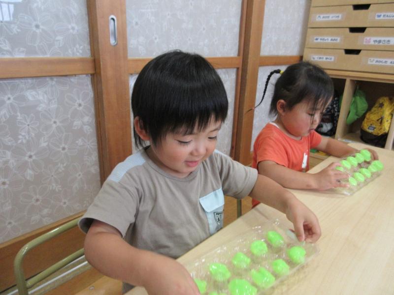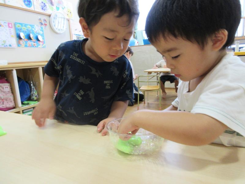 「つめた~い」「気持ちいいね」とびっくりしながらも楽しそうでした。
