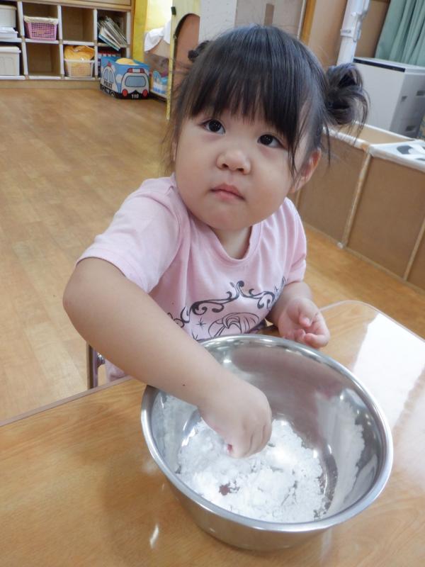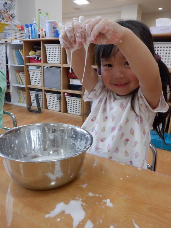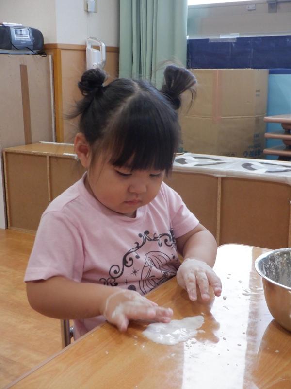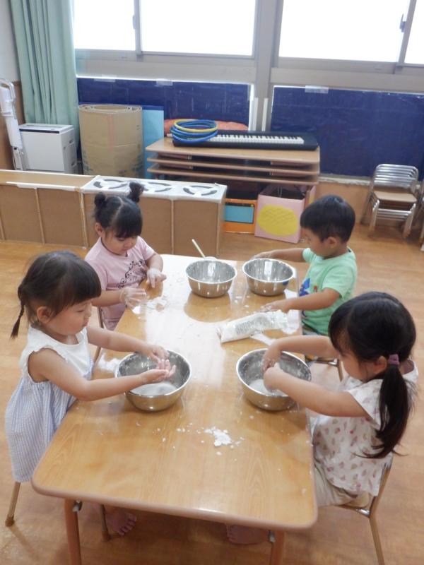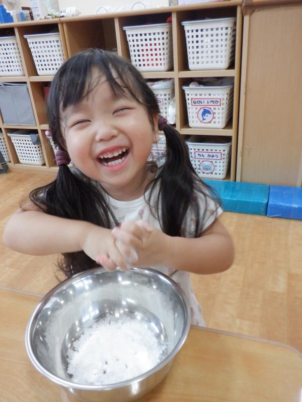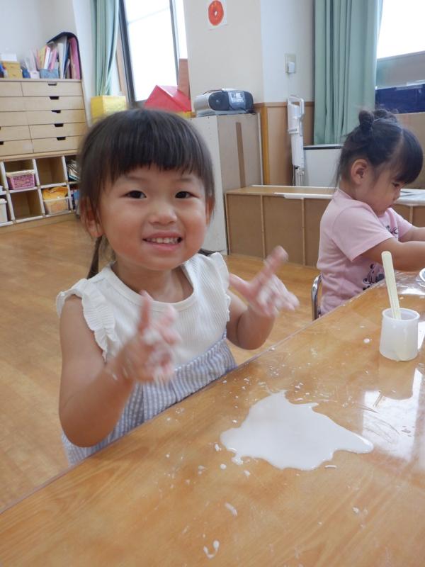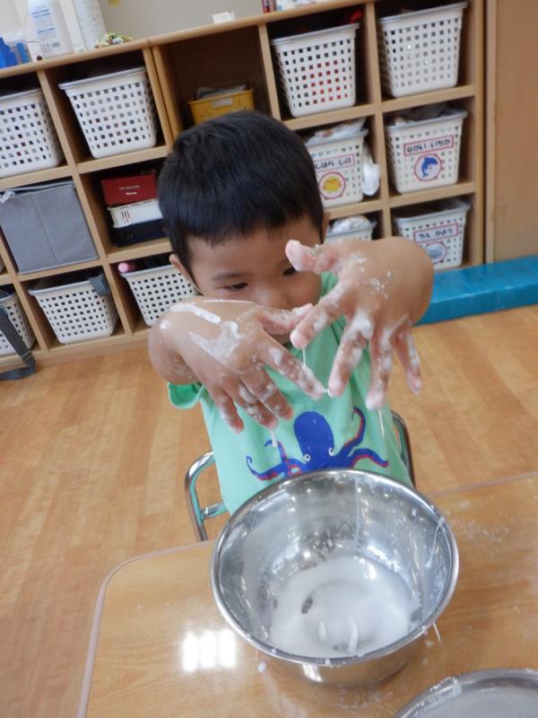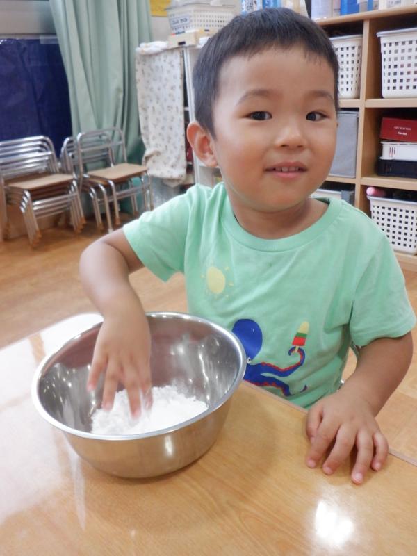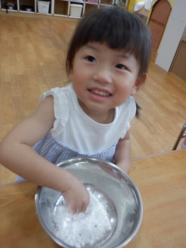 片栗粉あそびをしたよ~ ほし組(2歳児)