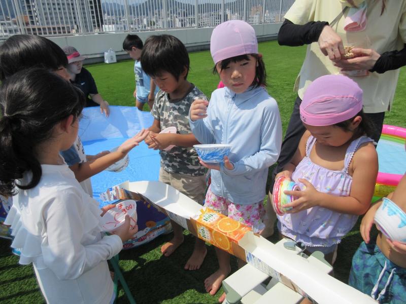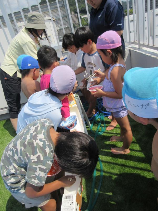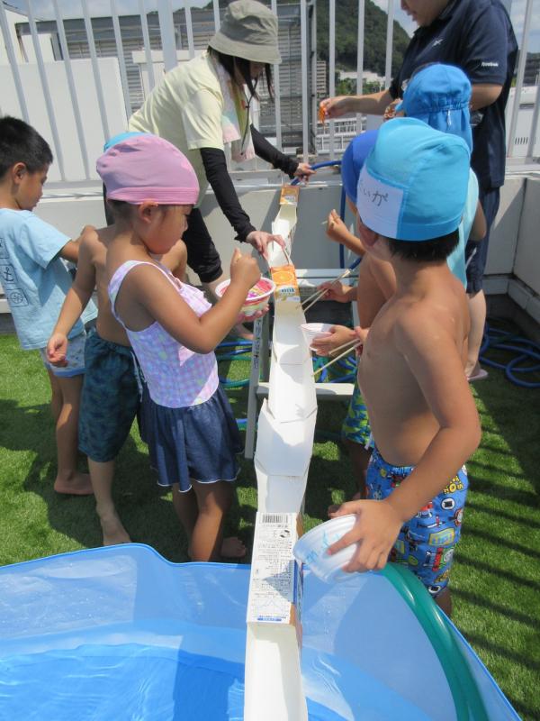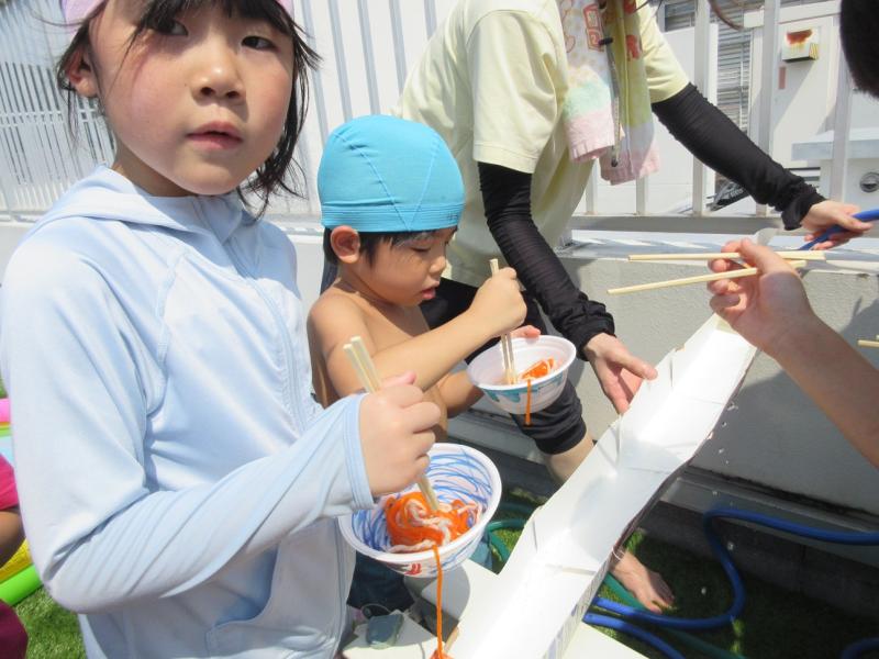 そうめん流しごっこをしたよ! つき組(4歳児)・そら組(5歳児)