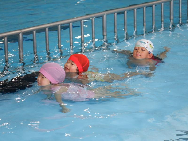 プールの中に入ると夏のプールの経験もあって水に抵抗なく楽しく活動することができました。