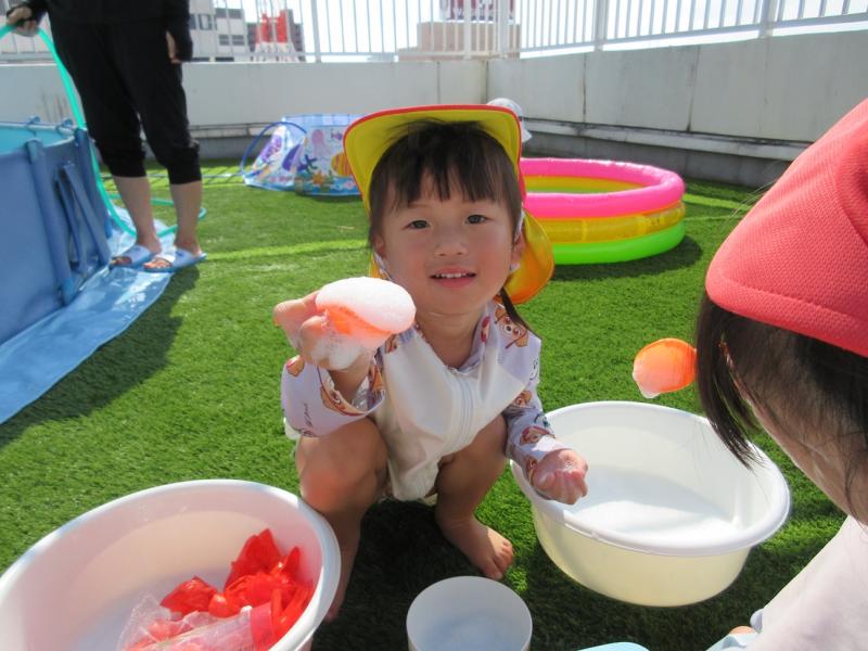 泡あそびしたよ! ゆき・ほし組(1・2歳児)