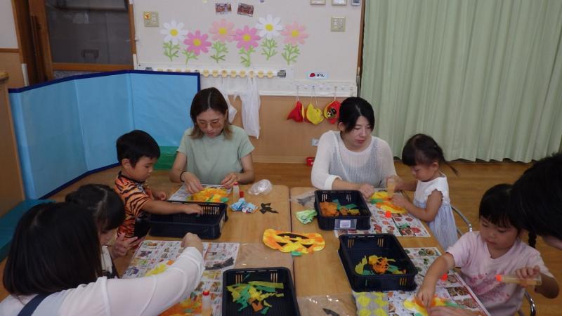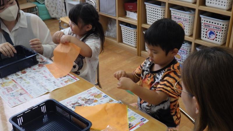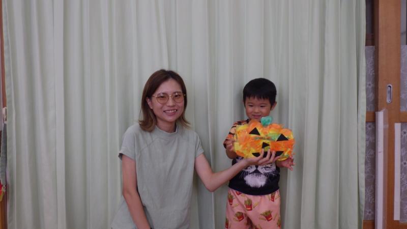 お家の人と一緒にハロウィンかぼちゃの製作をしました。