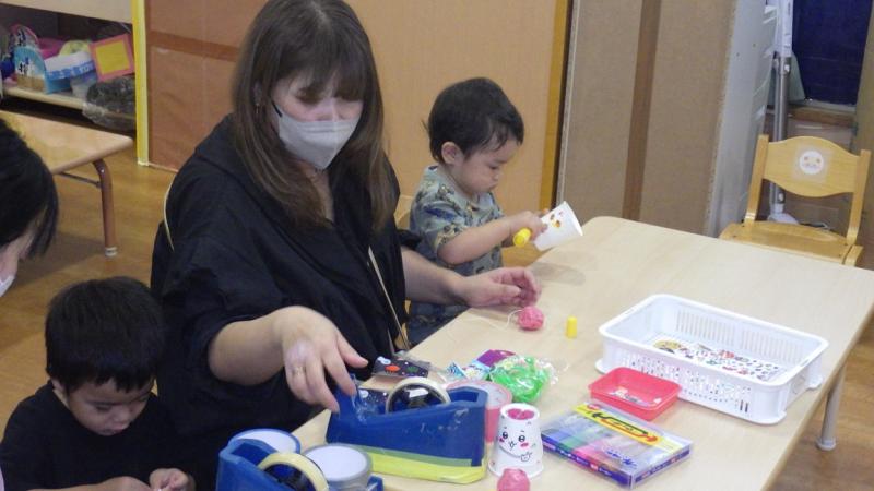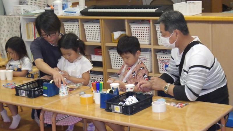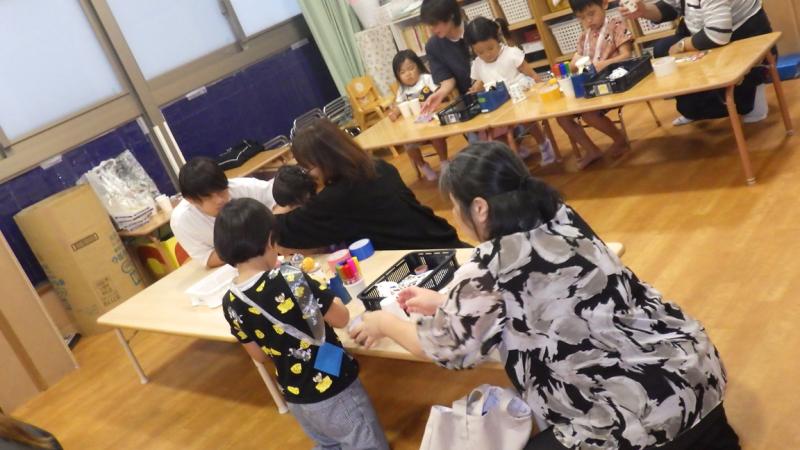 日頃、工作をしない大人の方が真剣にけん玉作りをしていましたよ。
