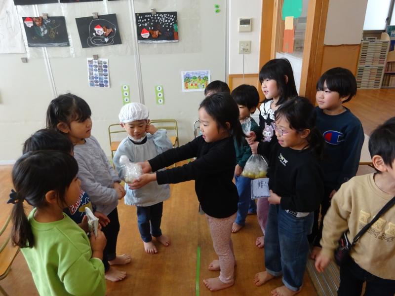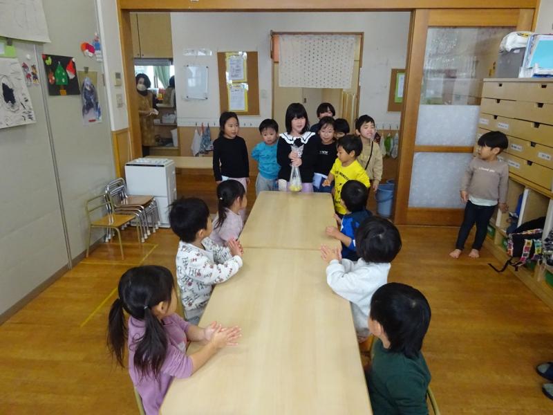 にじ組・つき組さんにもお裾分けをして喜んでもらい嬉しそうな子どもたちでした。