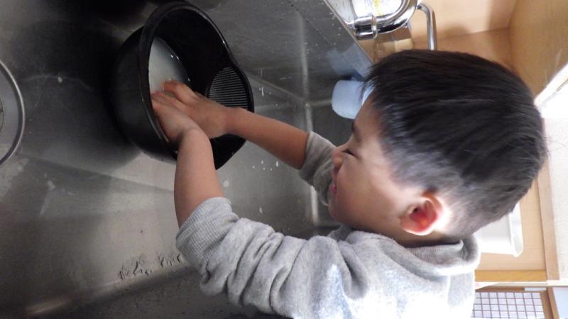 ボウルにお米とお水を入れて「おいしくなーれ」「おいしくなーれ」と