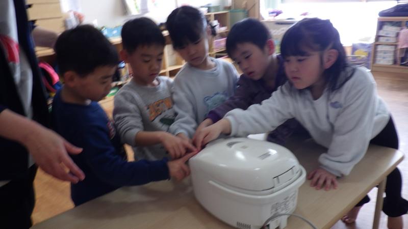 研いだお米を炊飯器に入れみんなでスタートボタンを押しました。