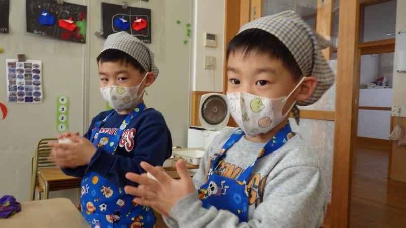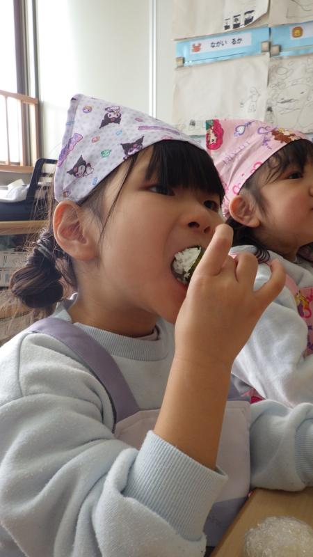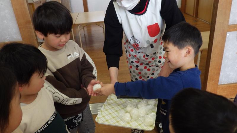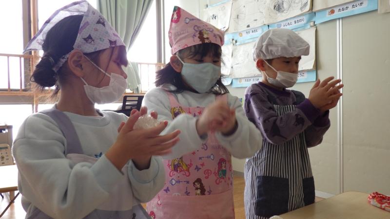 炊きあがったご飯で1人ずつ「にぎにぎ」と言いながらおにぎりを作りました。