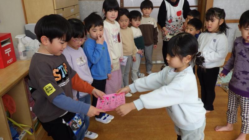 そら組さんにお礼のお手紙とおにぎりを渡しました。