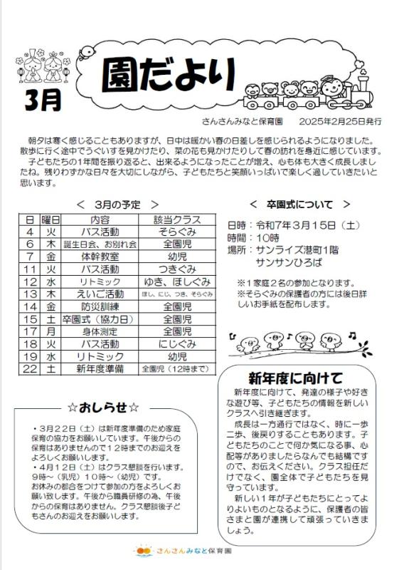 3月園だより