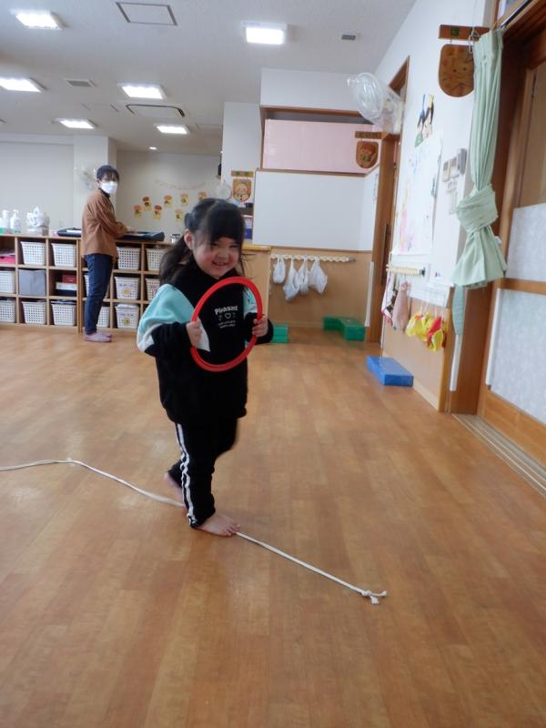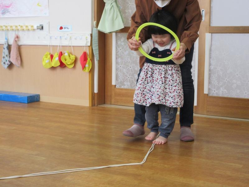 走ったり、止まったりデコボコ道を体で表現しながら動き楽しみました。